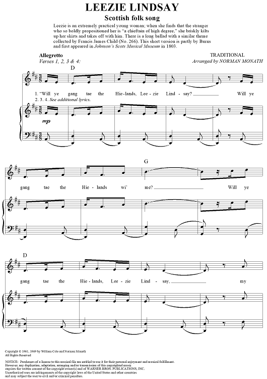 Digital Sheet Music for Leezie Lindsay by Norman Monath, Traditional scored for Piano/Vocal/Chords; id:260644