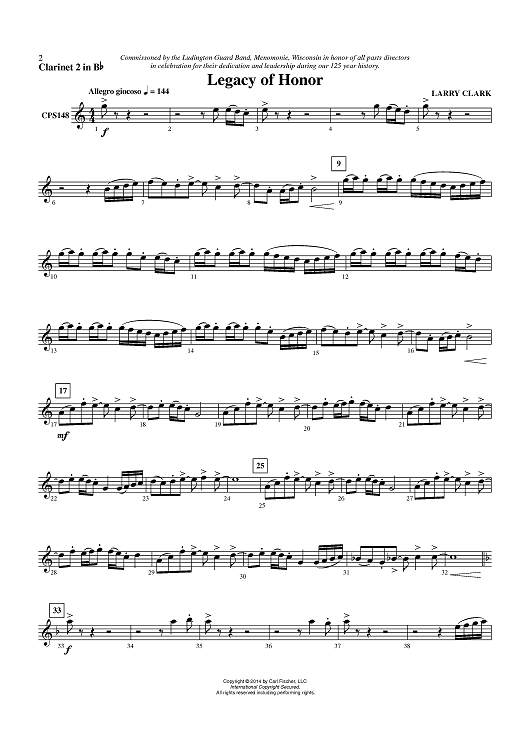 "Legacy of Honor - Clarinet 2 in Bb" Sheet Music by Larry Clark