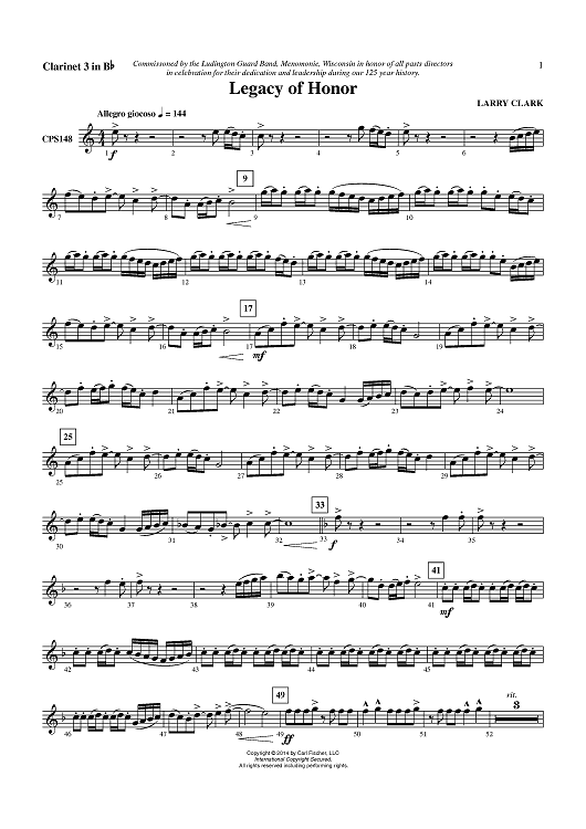 "Legacy of Honor - Clarinet 3 in Bb" Sheet Music by Larry Clark