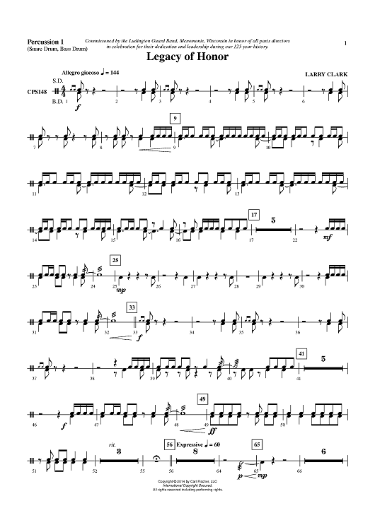 "Legacy of Honor - Percussion 1" Sheet Music by Larry Clark