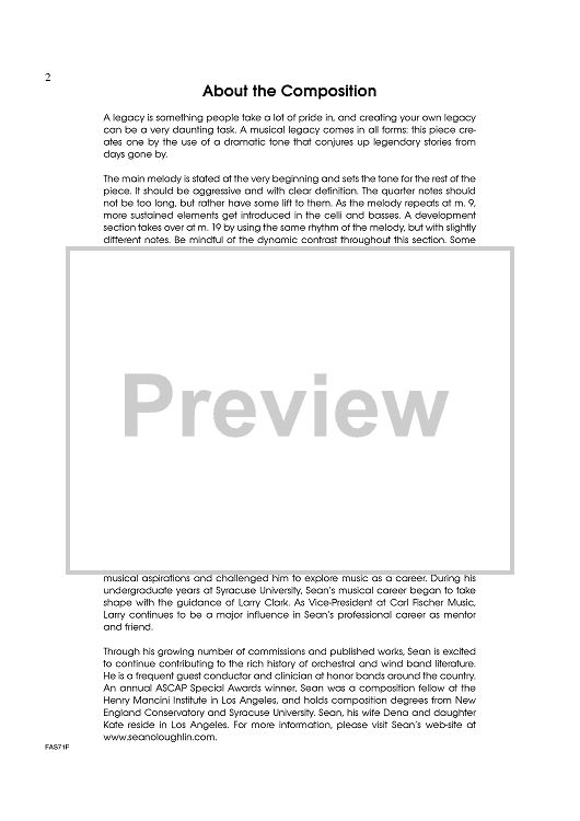 "Legacy - Score" Sheet Music by Sean O'Loughlin