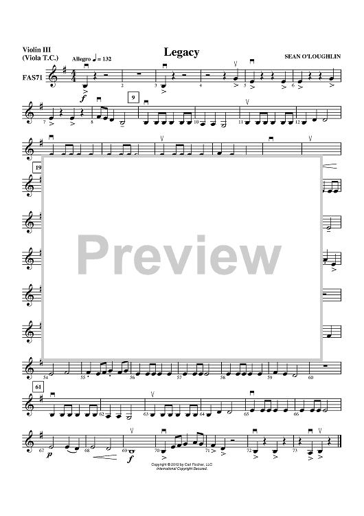 "Legacy - Violin 3 (Viola T.C.)" Sheet Music by Sean O'Loughlin