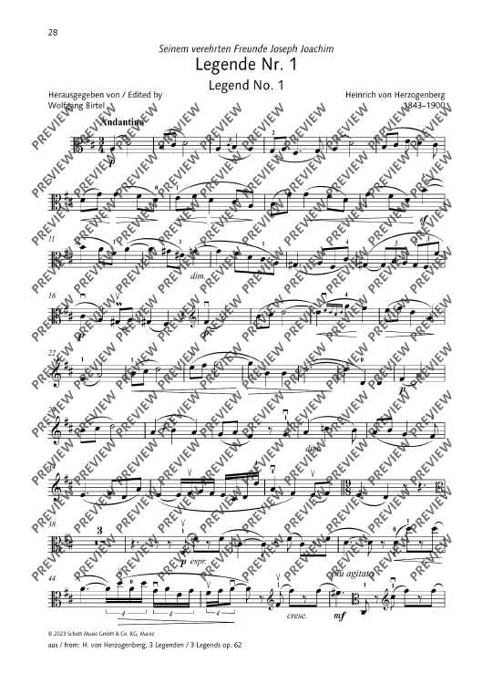 Digital Sheet Music for Legend No. 1 by Heinrich von Herzogenberg scored for Viola And Piano; id:499986