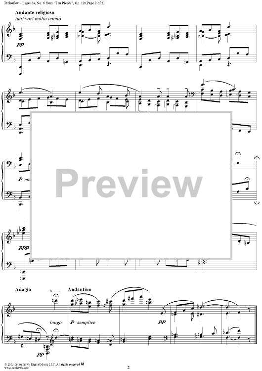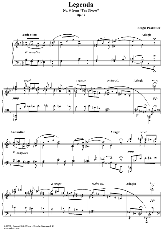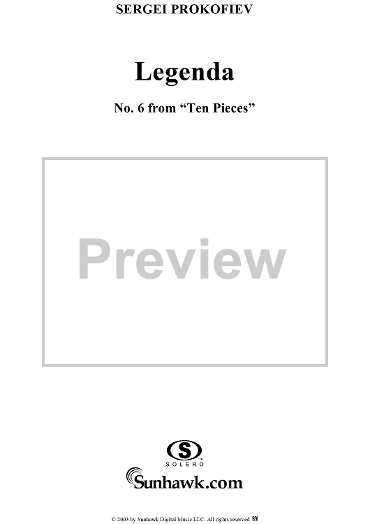 Digital Sheet Music for Legend, No. 6 from "Ten Pieces", Op. 12 by Sergei Prokofiev scored for Piano Solo; id:295321