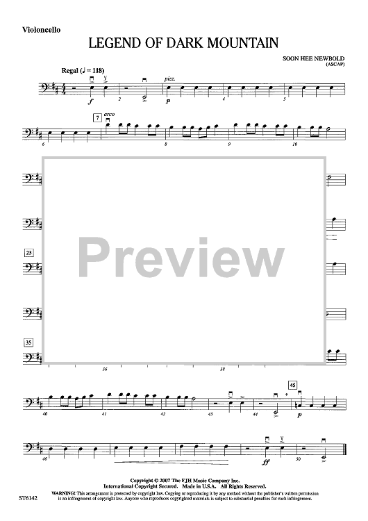 Digital Sheet Music for Legend of Dark Mountain - Violoncello by Soon Hee Newbold scored for String Orchestra; id:441649
