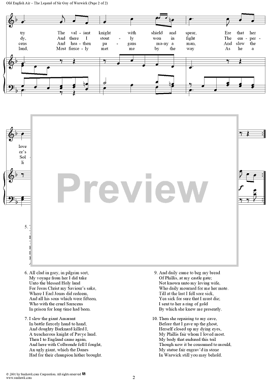 Digital Sheet Music for Legend of Sir Guy of Warwick, The (words compressed from old ballad) by Traditional scored for Piano/Vocal; id:258653