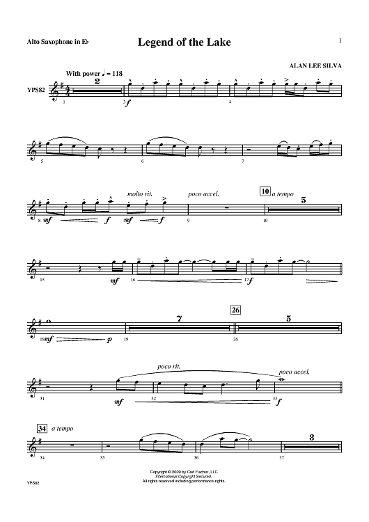"Legend of the Lake - Alto Sax" Sheet Music by Alan Lee Silva