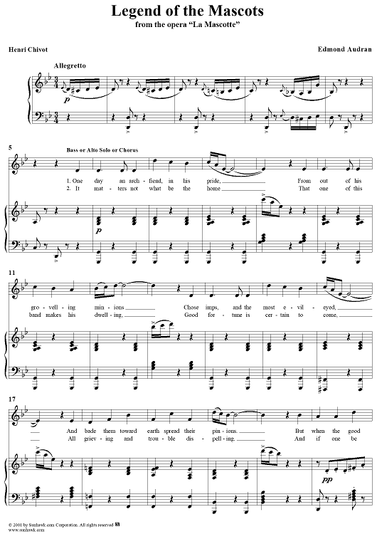Digital Sheet Music for Legend of the Mascots by Edmond Audran, Henri Chivot scored for Four-part Mixed Chorus; id:252221