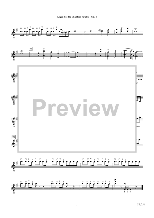 Digital Sheet Music for Legend of the Phantom Pirates - Violin 1 by Brian Balmages scored for String Orchestra; id:421839