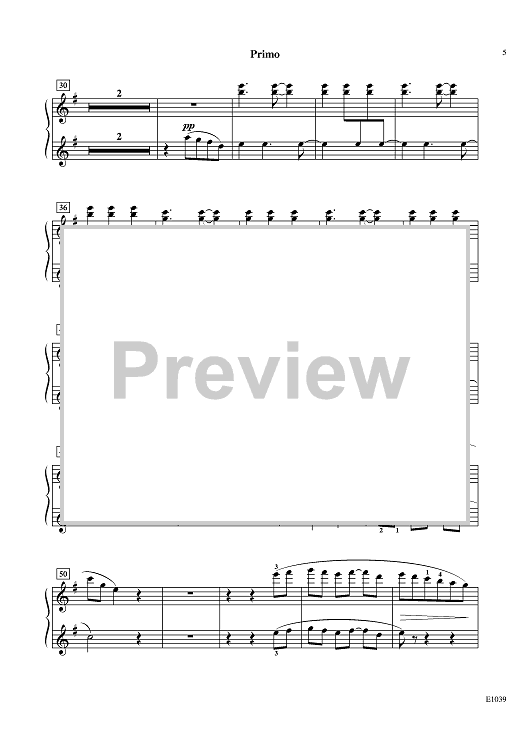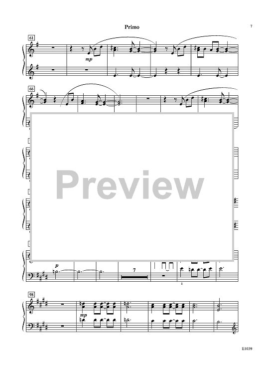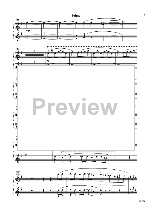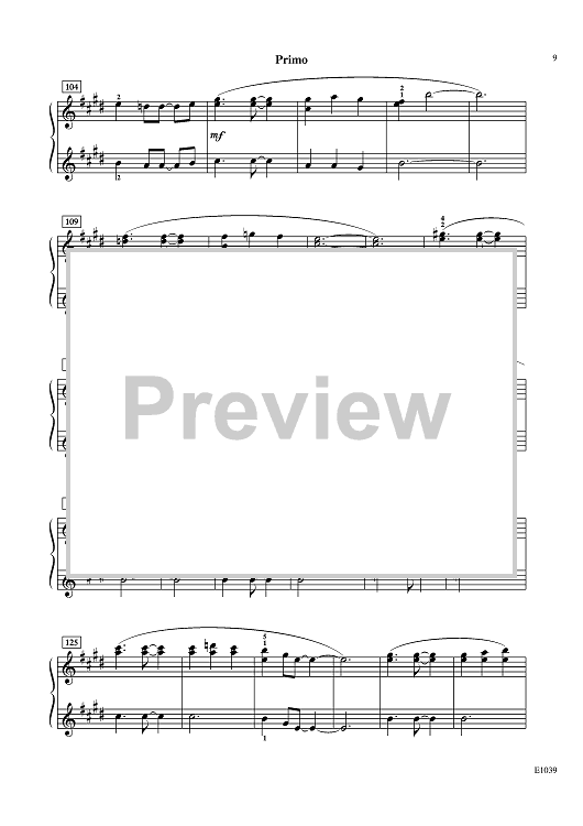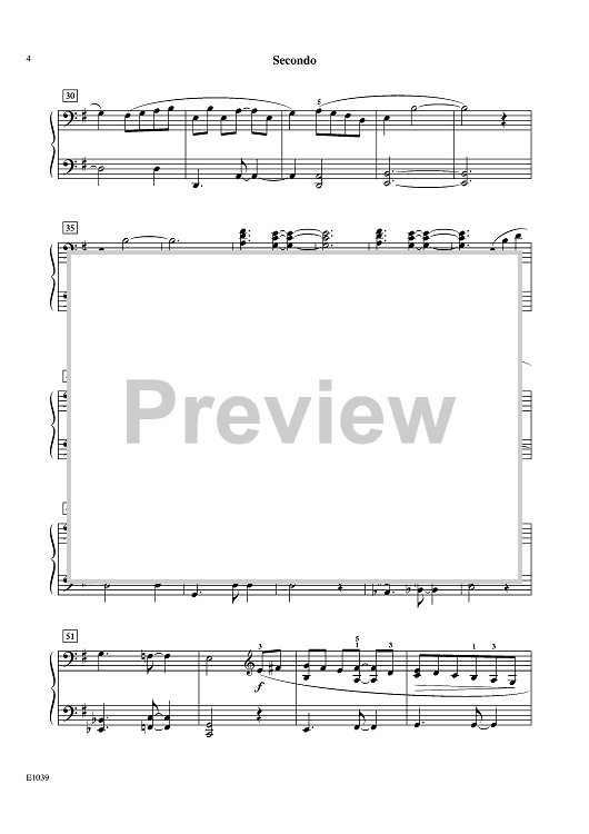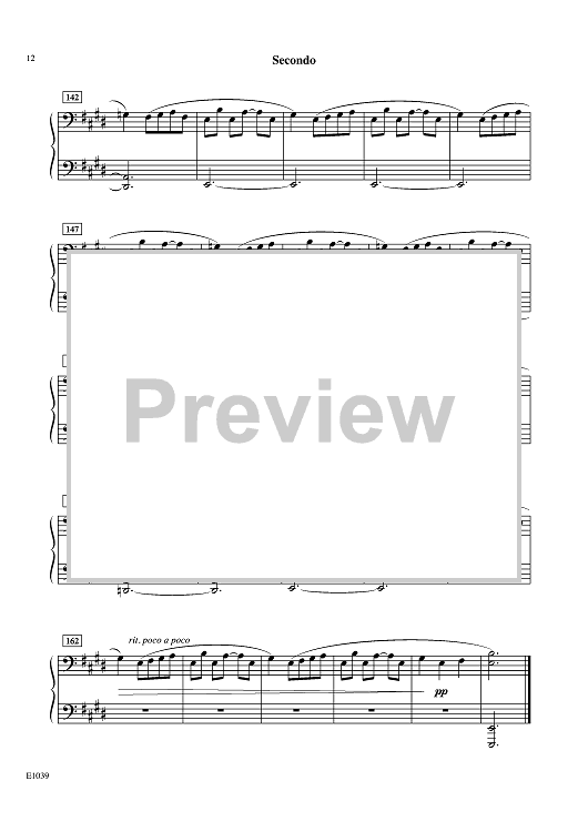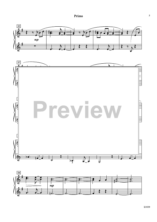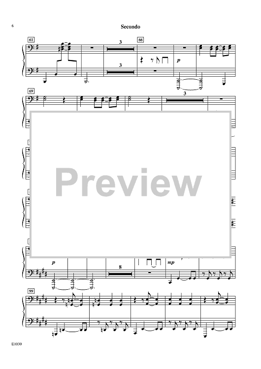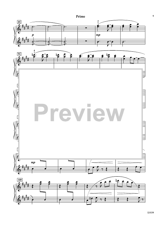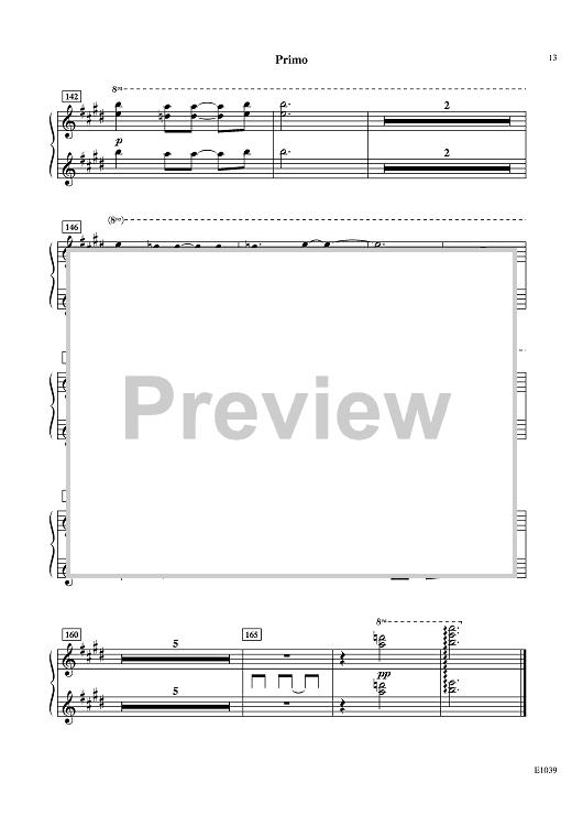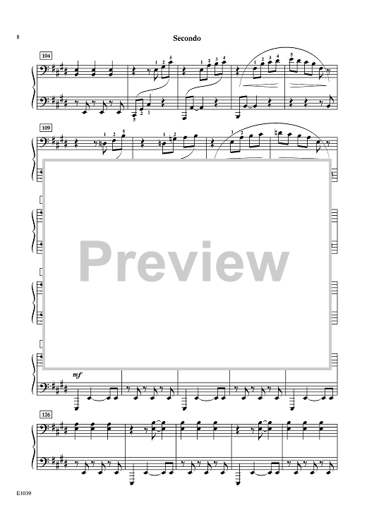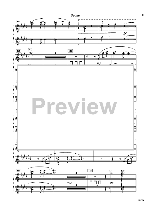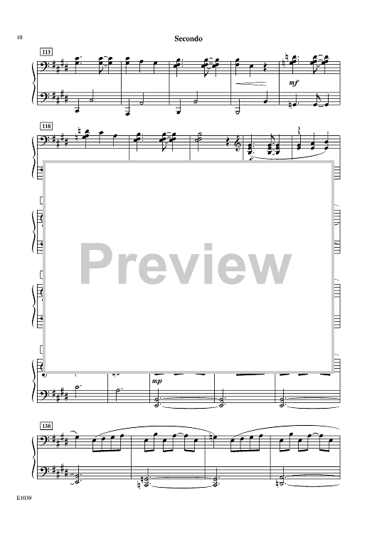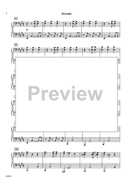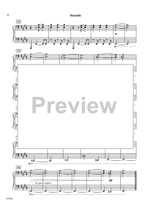 This engaging two-piano, eight-hand ensemble is both mysterious and energetic! Written in 3/4 time, this piece is laced with rhythmic syncopation, and contains equally exciting melodic sections. In the Piano I and Piano II primo and secondo parts, both performers have equivalent prominence throughout.