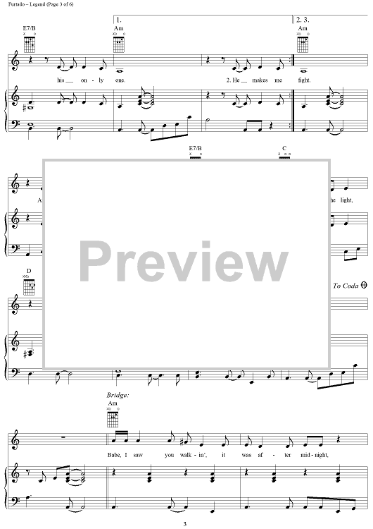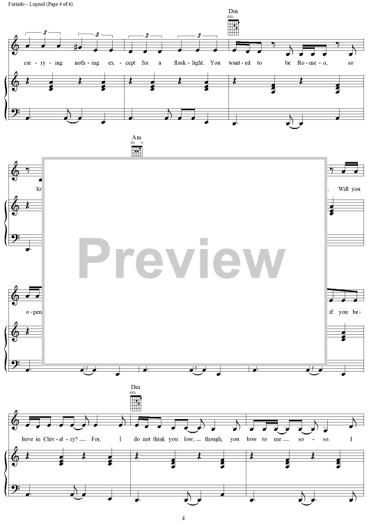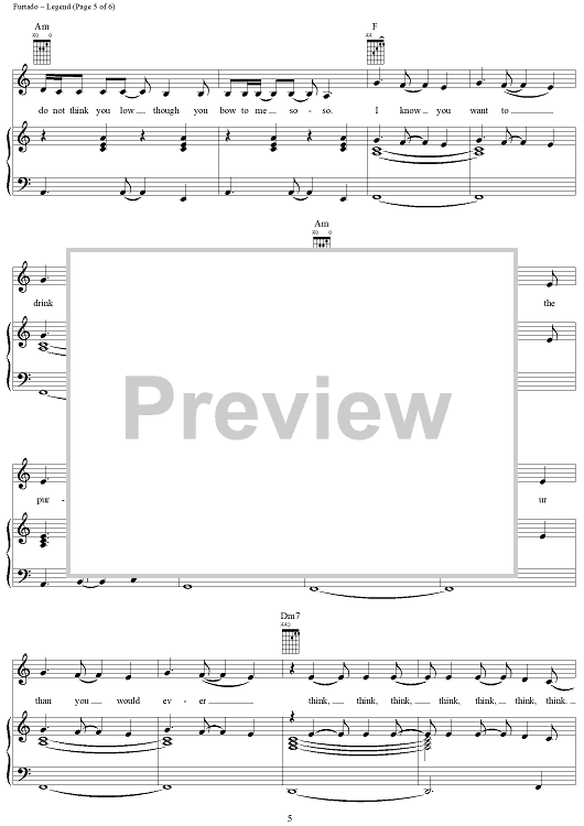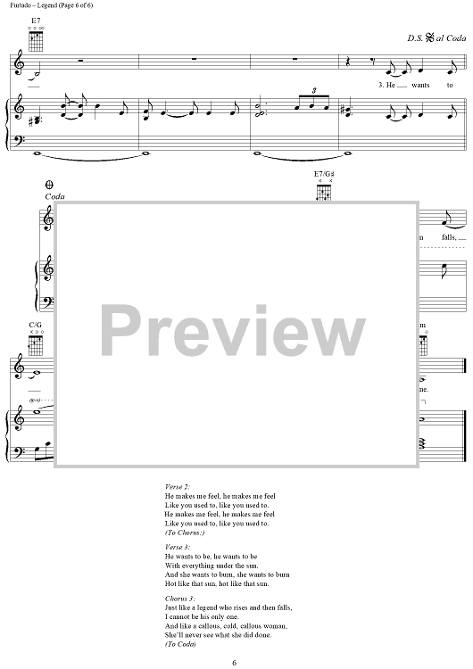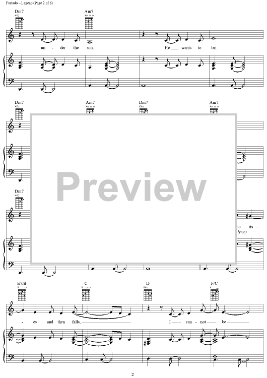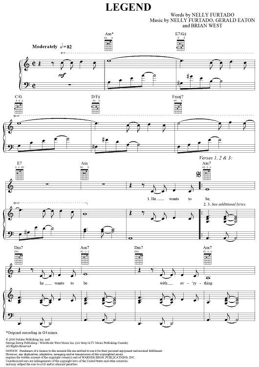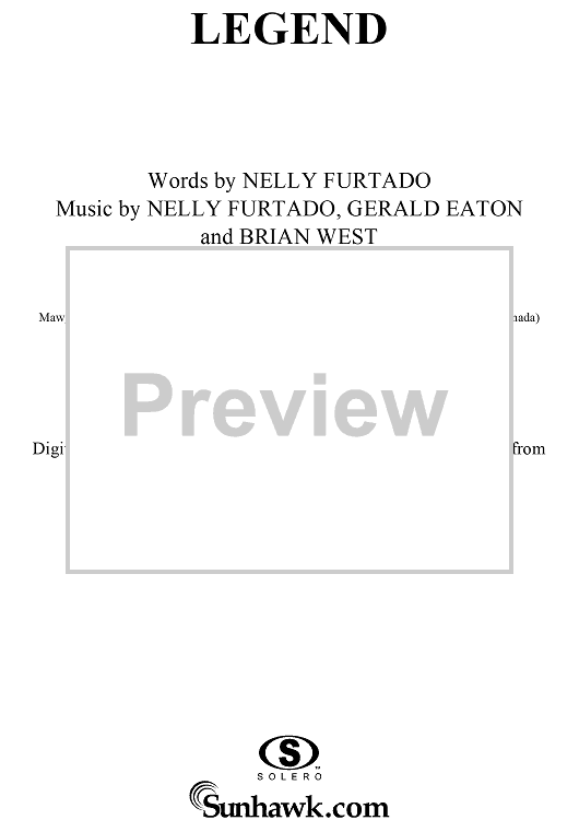 Digital Sheet Music for Legend by Nelly Furtado, Gerald Eaton, Brian West scored for Piano/Vocal/Chords; id:286603