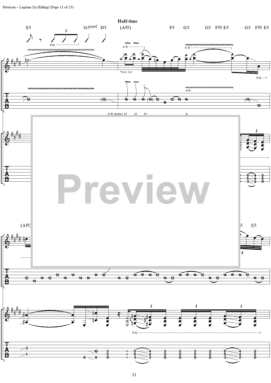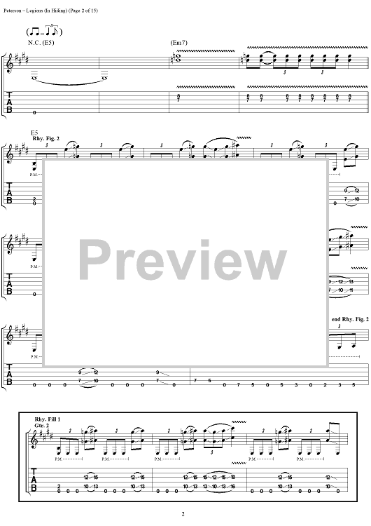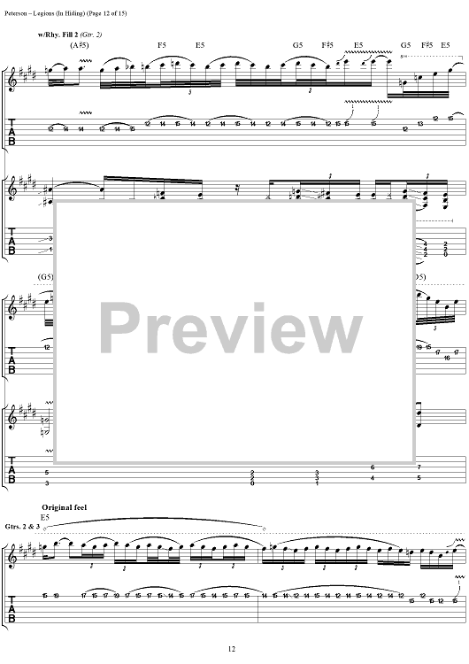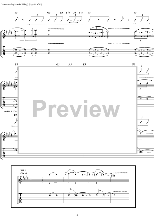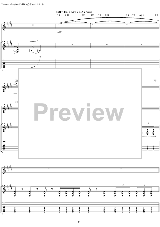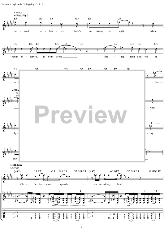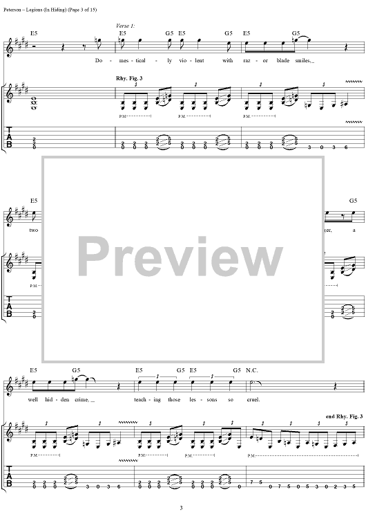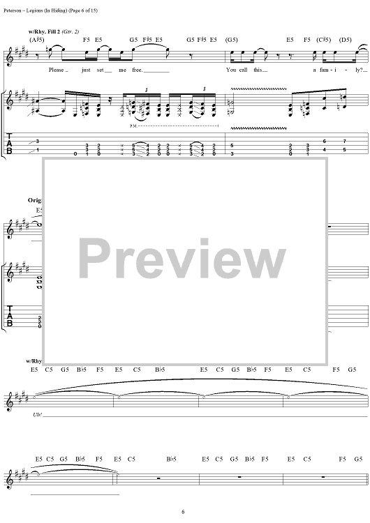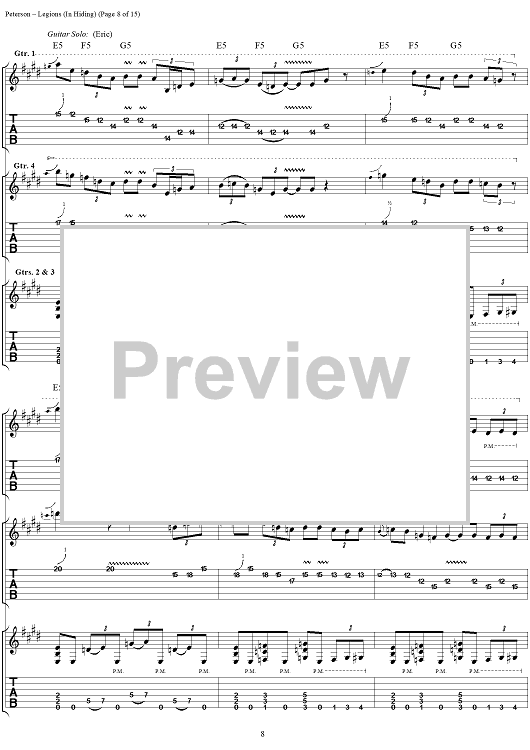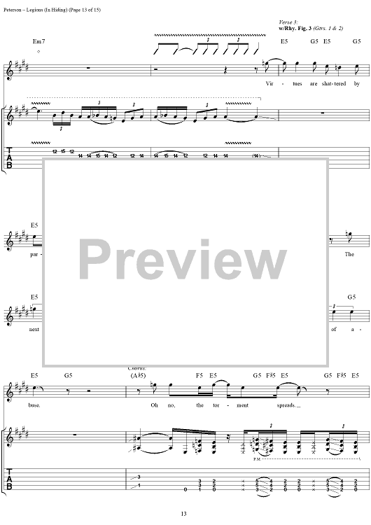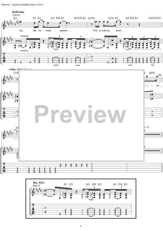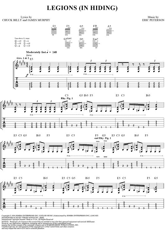 Digital Sheet Music for Legions (In Hiding) by Eric Peterson, Chuck Billy, James Murphy, Testament scored for Guitar Tab/Vocal; id:143686