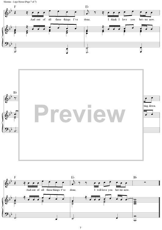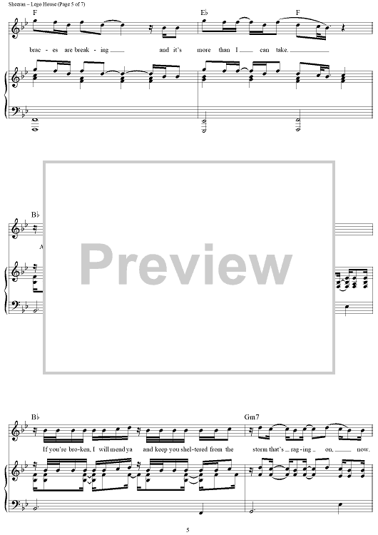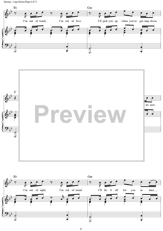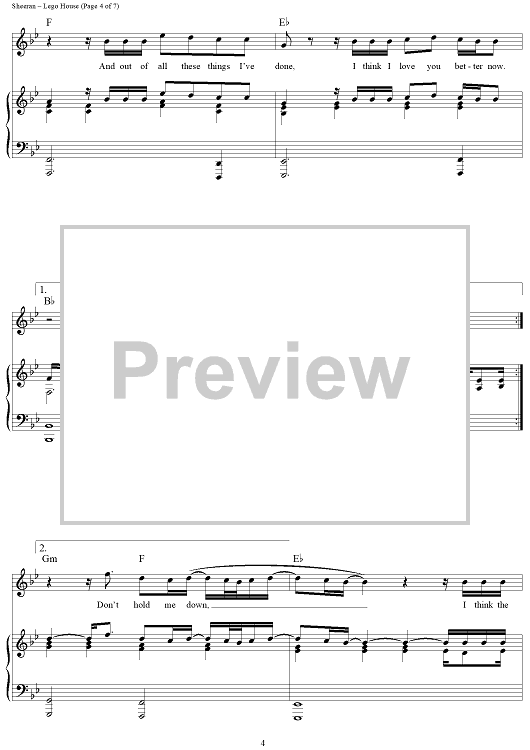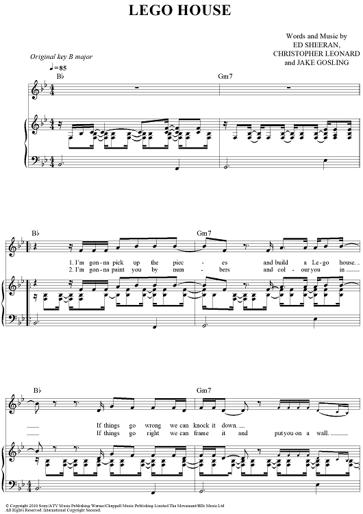 Digital Sheet Music for Lego House by Ed Sheeran, Jake Gosling, Christopher Leonard scored for Piano/Vocal/Chords; id:429473