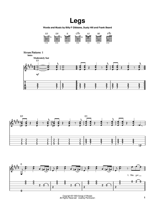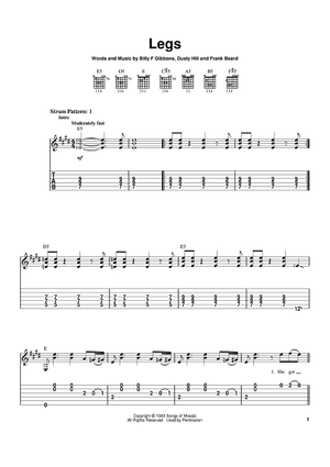 Digital Sheet Music for Legs by Billy Gibbons, Dusty Hill, Frank Beard, ZZ Top scored for Easy Guitar Tab; id:371185