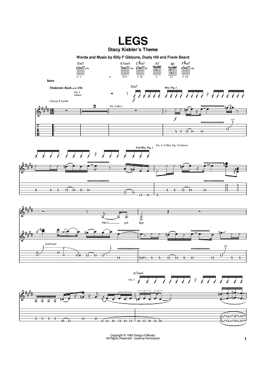 Digital Sheet Music for Legs by Billy Gibbons, Dusty Hill, Frank Beard, Kid Rock, ZZ Top scored for Guitar Tab; id:371250