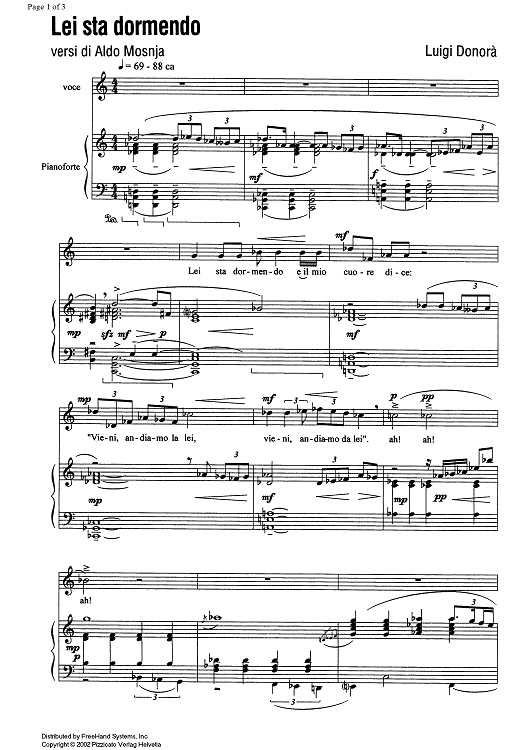 Digital Sheet Music for Lei sta dormendo - Score by , Luigi Donorà scored for Mezzo-soprano or Baritone/Piano; id:349920