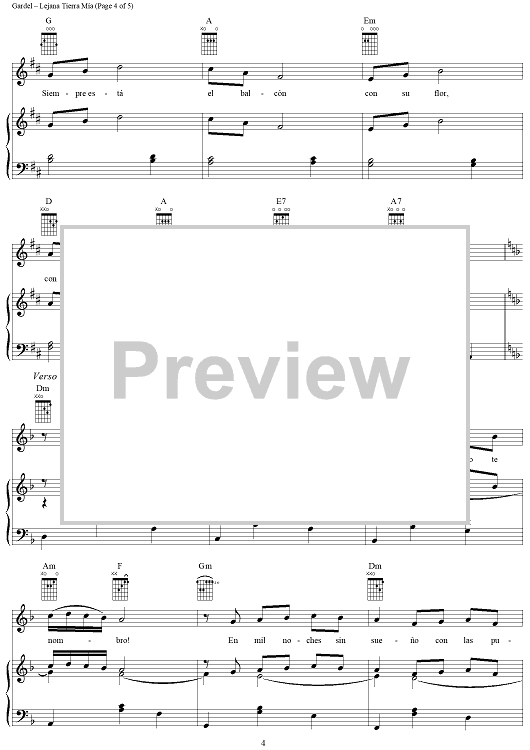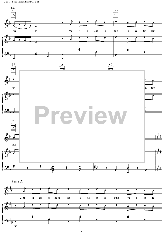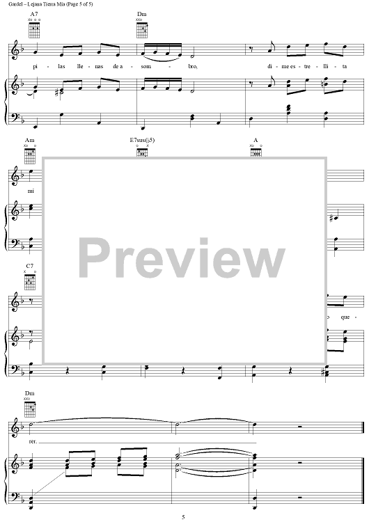 Digital Sheet Music for Lejana Tierra Mía by Carlos Gardel, Alfredo Le Pera scored for Piano/Vocal/Chords; id:311957