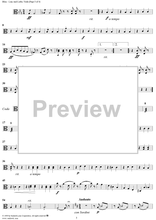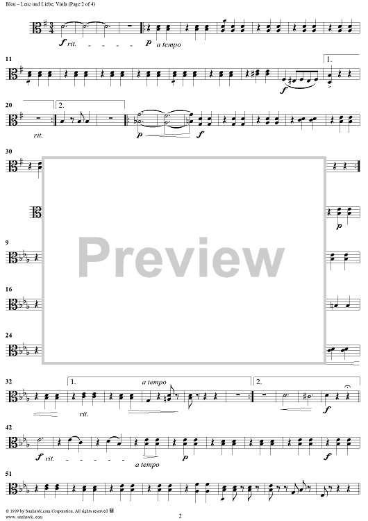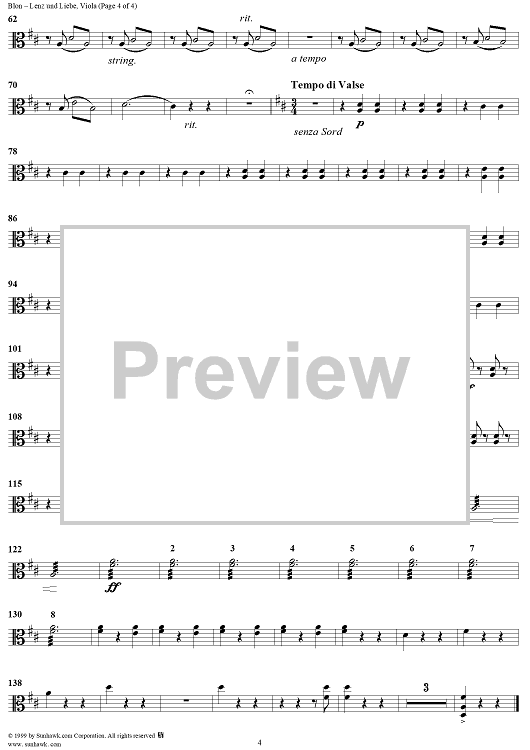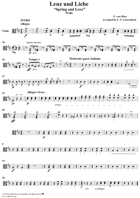 Digital Sheet Music for Lenz und Liebe ("Spring and Love") Waltz - Viola by Franz von Blon scored for String Quartet; id:258002