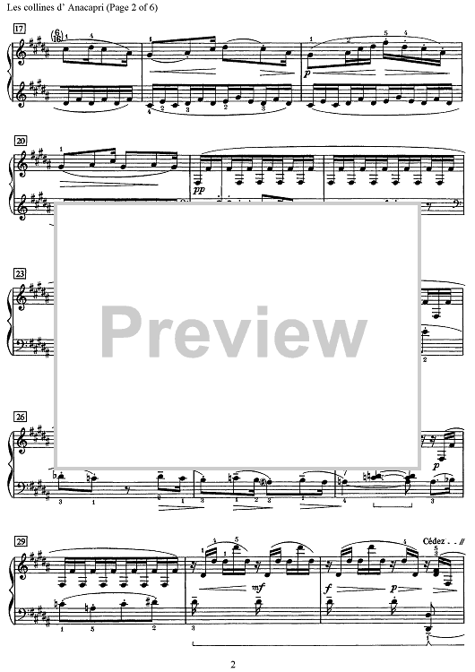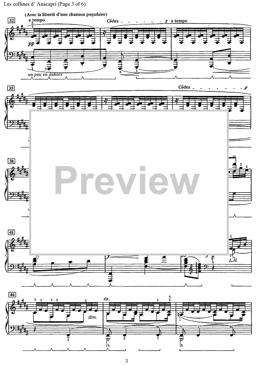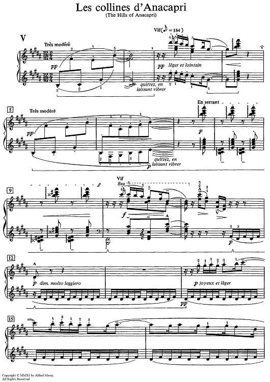 "Les collines d'Anacapri (The Hills of Anacapri)" Sheet Music by Claude Debussy