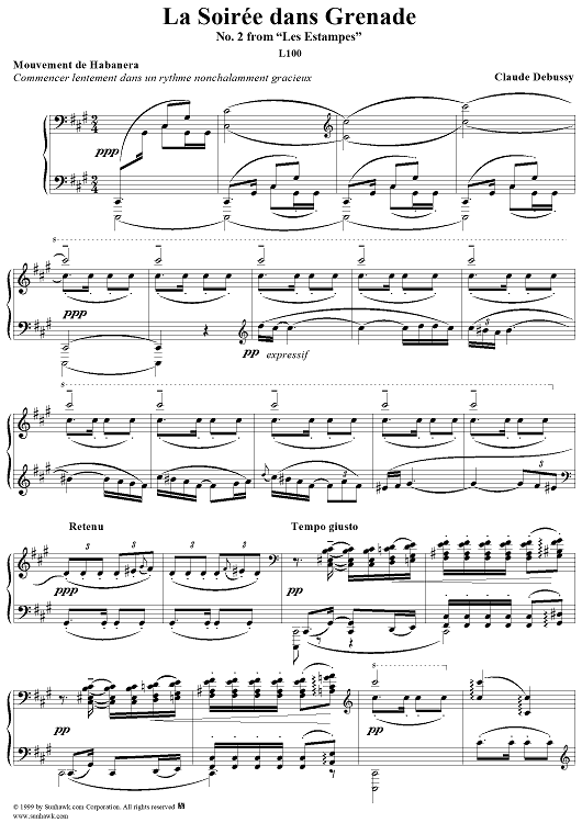 "Les Estampes, No. 2: La Soirée dans Grenade" Sheet Music by Claude Debussy