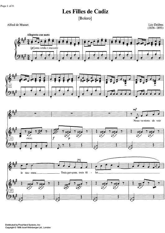 Digital Sheet Music for Les Filles de Cadiz by Leo Delibes scored for Soprano/Piano; id:332557