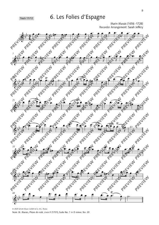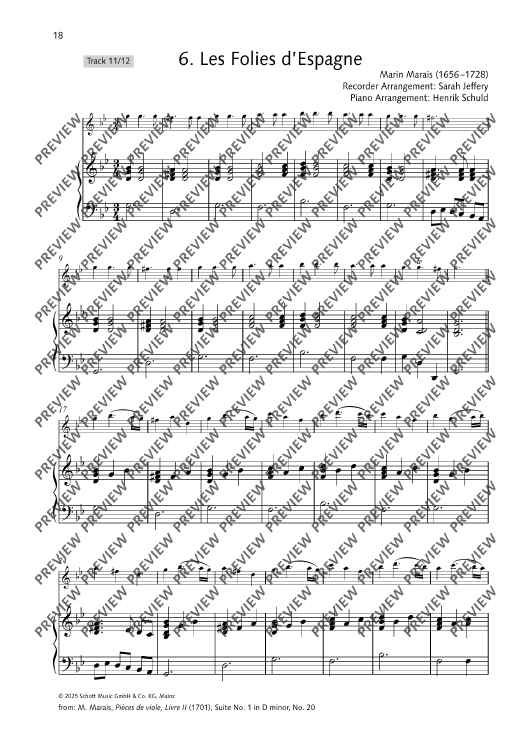 Digital Sheet Music for Les Folies d'Espagne by Marin Marais, Sarah Jeffery, Henrik Schuld scored for Altorecorder And Piano; id:505432