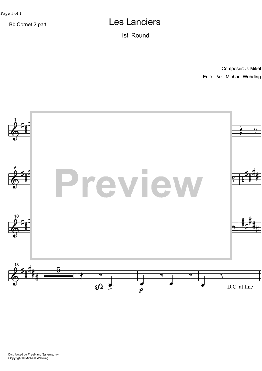 Digital Sheet Music for Les Lanciers 1st Round - B-flat Cornet 2 by J. Mikel, Michael Wehding scored for Orchestra; id:324138