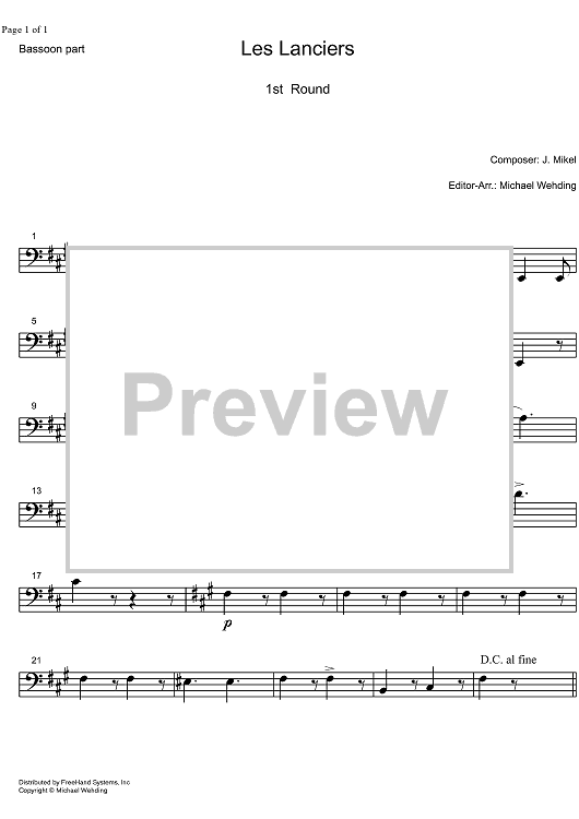 Digital Sheet Music for Les Lanciers 1st Round - Bassoon by J. Mikel, Michael Wehding scored for Orchestra; id:324140