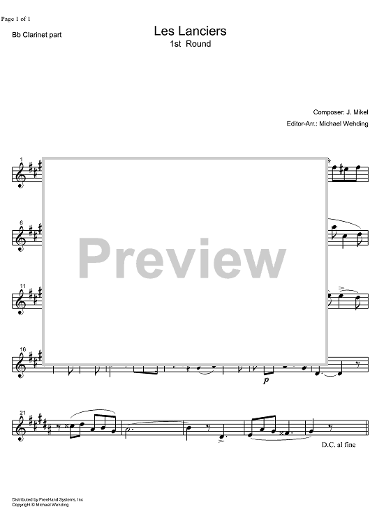 Digital Sheet Music for Les Lanciers 1st Round - Clarinet in B-flat by J. Mikel, Michael Wehding scored for Orchestra; id:324136