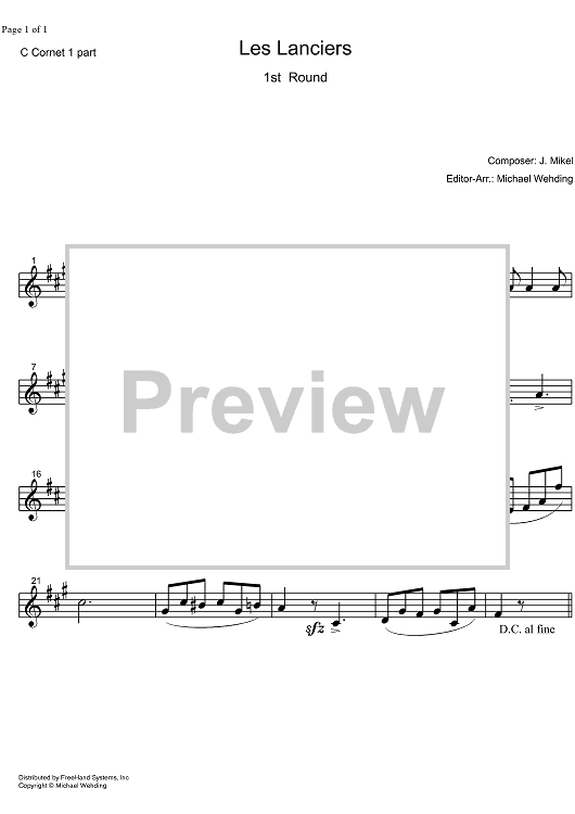 Digital Sheet Music for Les Lanciers 1st Round - Cornet in C 1 by J. Mikel, Michael Wehding scored for Orchestra; id:324141