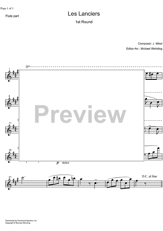 "Les Lanciers 1st Round - Flute" Sheet Music by J. Mikel