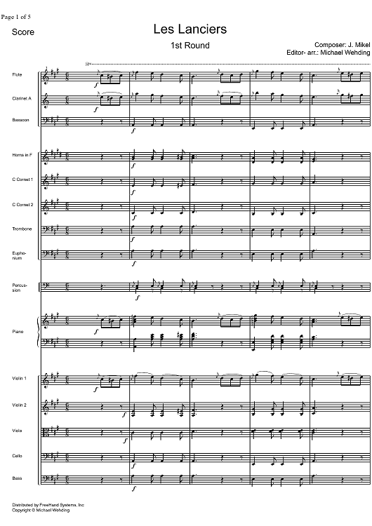 Digital Sheet Music for Les Lanciers 1st Round - Full Score by , J. Mikel, Michael Wehding scored for Orchestra; id:324133