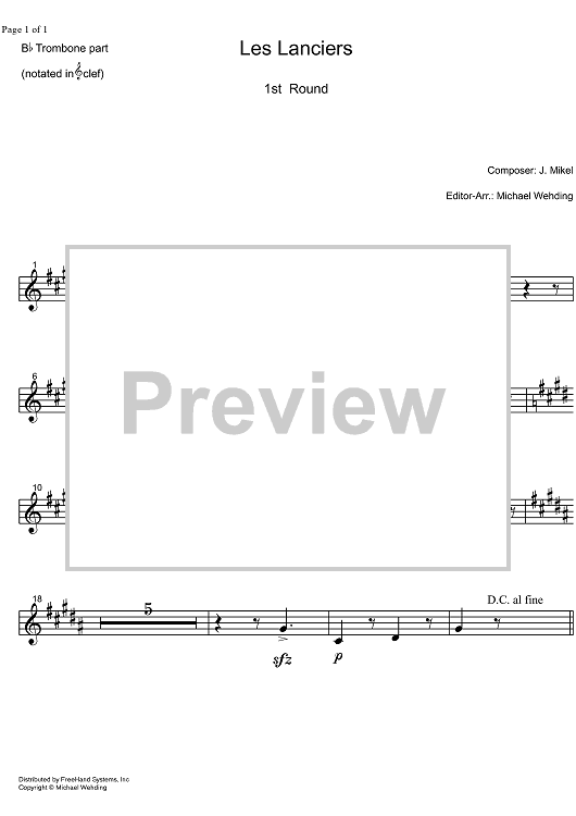 "Les Lanciers 1st Round - Trombone in B-flat TC" Sheet Music by J. Mikel