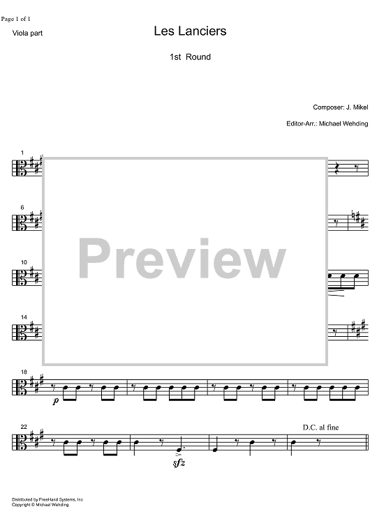 Digital Sheet Music for Les Lanciers 1st Round - Viola by J. Mikel, Michael Wehding scored for Orchestra; id:324148