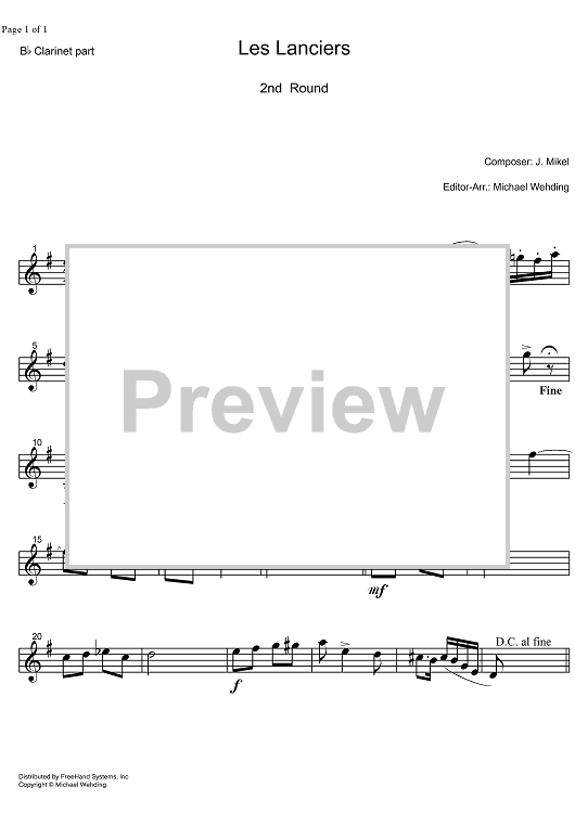 "Les Lanciers 2nd Round - B-flat Clarinet 1" Sheet Music by J. Mikel