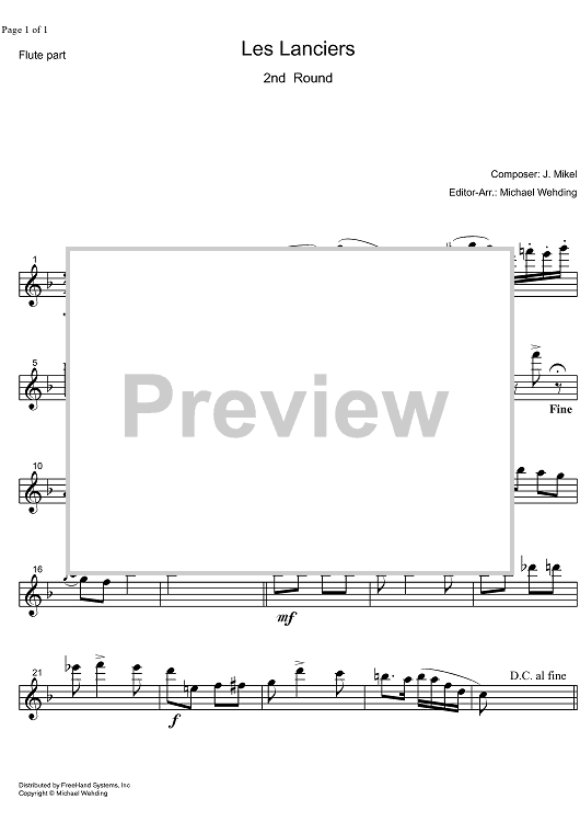 "Les Lanciers 2nd Round - Flute" Sheet Music by J. Mikel