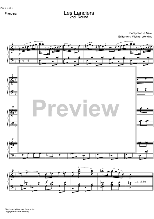 "Les Lanciers 2nd Round - Piano" Sheet Music by J. Mikel