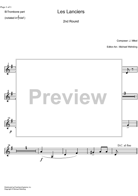 Digital Sheet Music for Les Lanciers 2nd Round - Trombone in B-flat TC by J. Mikel, Michael Wehding scored for Orchestra; id:348050