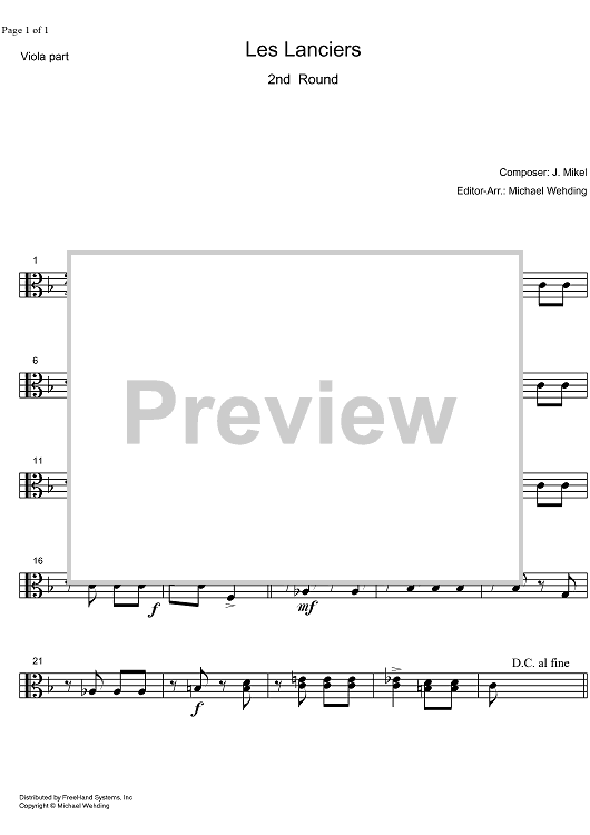 Digital Sheet Music for Les Lanciers 2nd Round - Viola by J. Mikel, Michael Wehding scored for Orchestra; id:348046