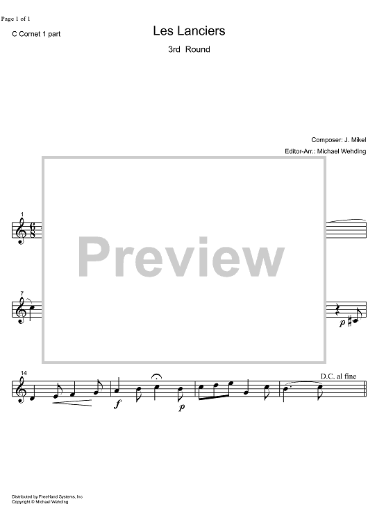 Digital Sheet Music for Les Lanciers 3rd Round - Cornet in C 1 by , J. Mikel, Michael Wehding scored for Orchestra; id:324199