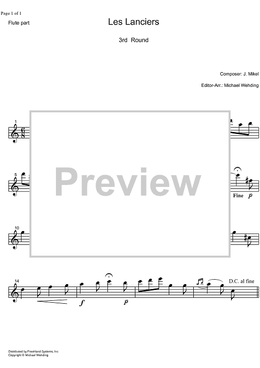 Digital Sheet Music for Les Lanciers 3rd Round - Flute by , J. Mikel, Michael Wehding scored for Orchestra; id:324202