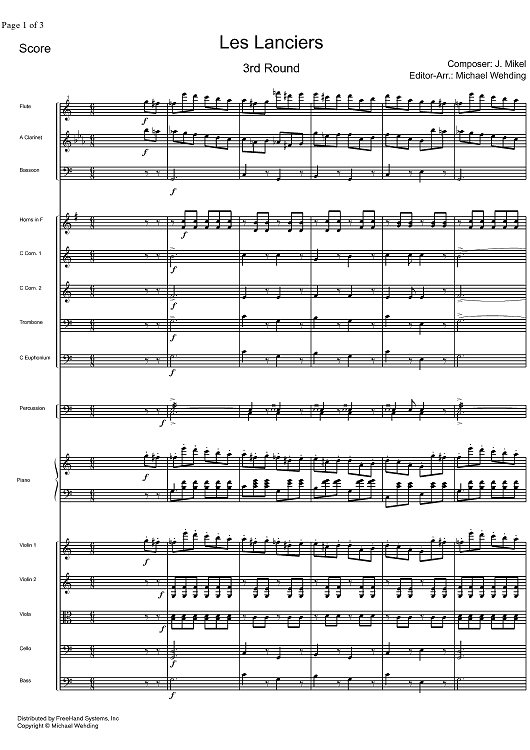 Digital Sheet Music for Les Lanciers 3rd Round - Full Score by , J. Mikel, Michael Wehding scored for Orchestra; id:324191