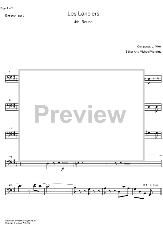 Digital Sheet Music for Les Lanciers 4th Round - Bassoon by J. Mikel, Michael Wehding scored for Orchestra; id:324227