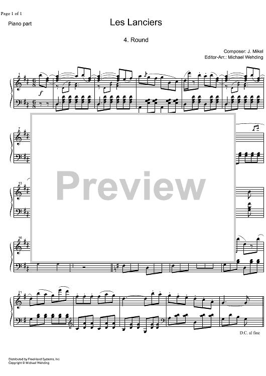 Digital Sheet Music for Les Lanciers 4th Round - Piano by J. Mikel, Michael Wehding scored for Orchestra; id:324234