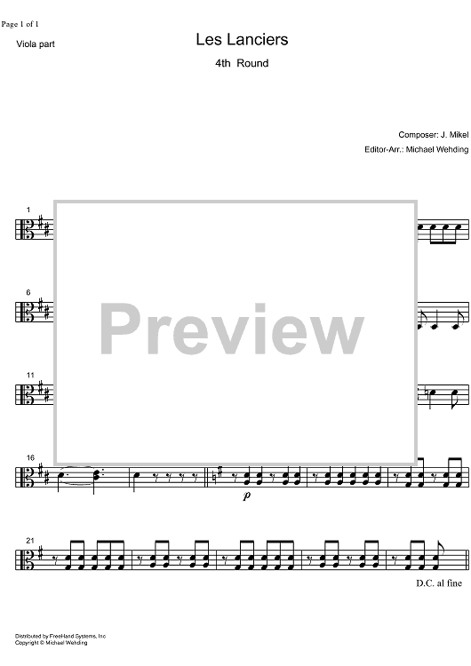 Digital Sheet Music for Les Lanciers 4th Round - Viola by J. Mikel, Michael Wehding scored for Orchestra; id:324236