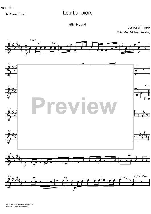 Digital Sheet Music for Les Lanciers 5th Round - B-flat Cornet 1 by J. Mikel, Michael Wehding scored for Orchestra; id:324252