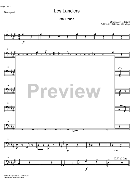 Digital Sheet Music for Les Lanciers 5th Round - Bass by J. Mikel, Michael Wehding scored for Orchestra; id:324250