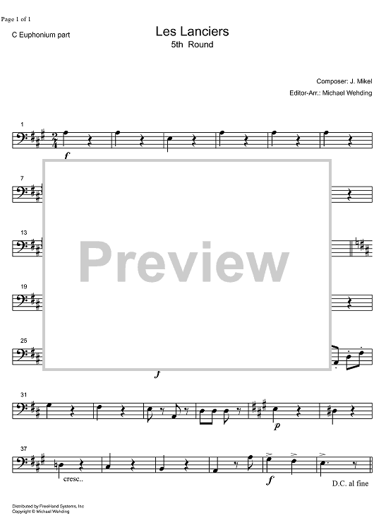 Digital Sheet Music for Les Lanciers 5th Round - Euphonium in C by J. Mikel, Michael Wehding scored for Orchestra; id:324259