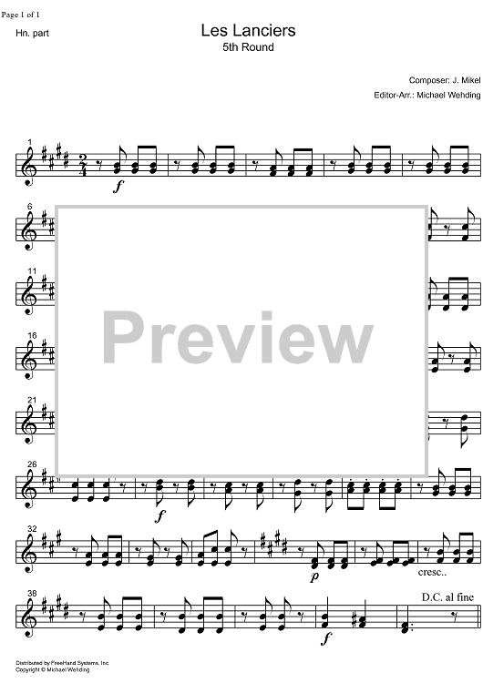 Digital Sheet Music for Les Lanciers 5th Round - Horns by J. Mikel, Michael Wehding scored for Orchestra; id:324261