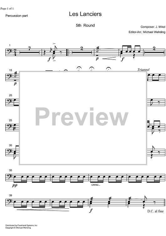 Digital Sheet Music for Les Lanciers 5th Round - Percussion by J. Mikel, Michael Wehding scored for Orchestra; id:324262